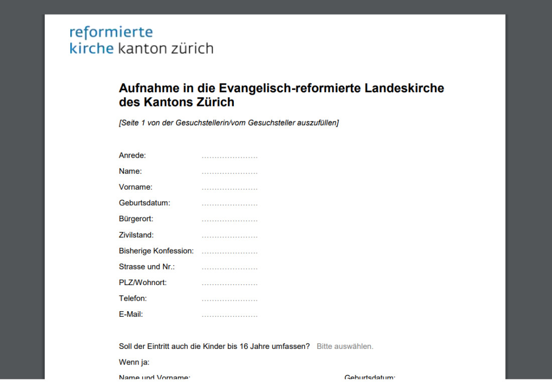 Grundsätzlich ist der Ablauf so: Füllen Sie das bereitgestellte Eintrittsformular aus und unterschreiben Sie es. Senden Sie das Formular an das Sekretariat Ihrer Kirchgemeinde.